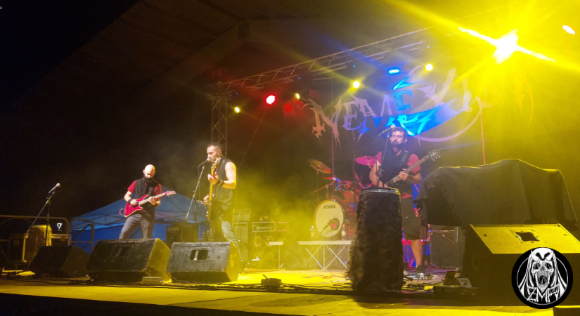 Gli headliner sono i Sadist, una delle band storiche del patrimonio metal italiano, seguiti dagli Infernal Angels freschi dell’ultimo album Shrine of Black Fire, e dalle band di apertura: i pugliesi Nemexist, i locali Conspiration 88 e i Fury of Elizabeth. Un evento gratuito, aperto a tutti, che si svolge in una cornice esotica: l’anfiteatro comunale situato tra una chiesa ed un cimitero, con una folta area stand alla sinistra dell’entrata e il palco a destra. Il pubblico non è dei più numerosi, ma è felice, carico e non vede l’ora che inizino le danze.