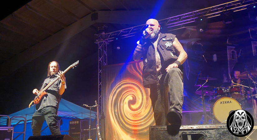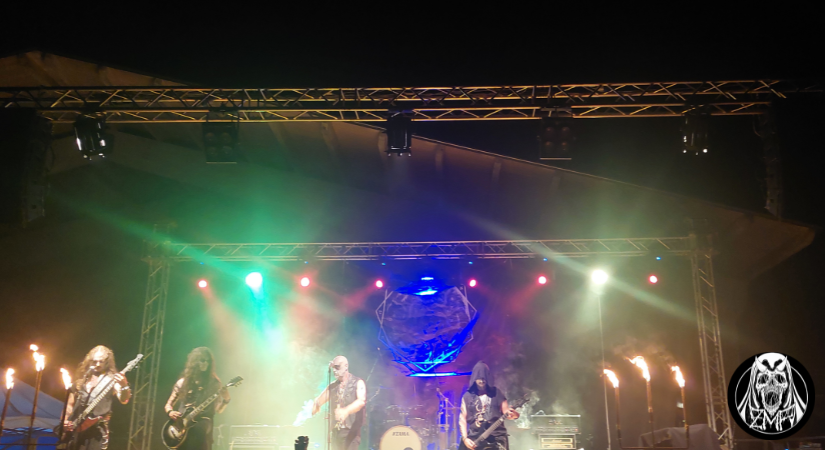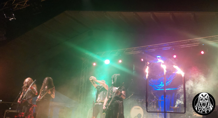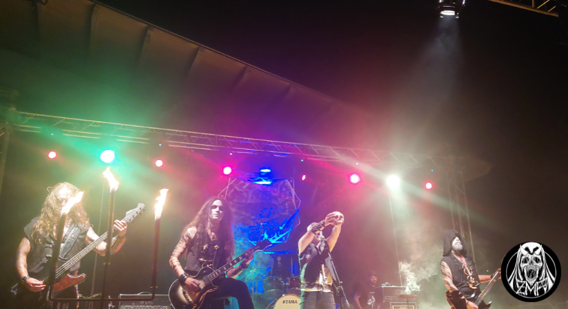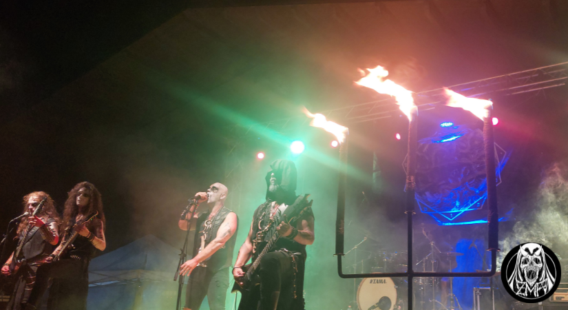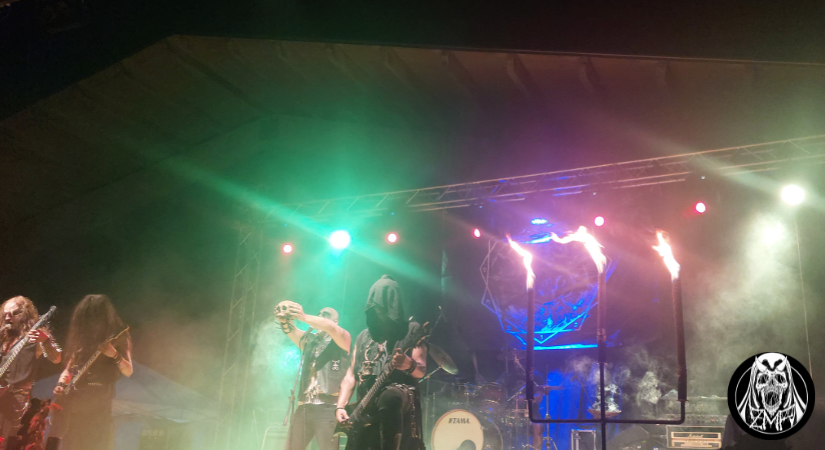 Le tenebre sono calate definitivamente su San Cosmo Albanese, atmosfera perfetta per accogliere gli Infernal Angels, formazione che vanta un’esperienza ventennale con 6 album in studio e numerose esibizioni dal vivo. Giunti in Calabria, i musicisti sono pronti a regalare al pubblico un’altra performance proprio come ci si aspetterebbe da una band black metal dedita all’occultismo: candelabri a bordo palco, corpse paint consistente, borchie a tutto spiano e una dose di sana cattiveria sonora e scenica. Gli Infernal Angels sono diventati specialisti in tutto ciò, e lo dimostrano con la loro presenza sul palco: Xes non fa altro che intonare scream potenti e terremotanti sorreggendo un teschio, proprio come un rituale oscuro, con i chitarristi Nekroshadow e Apsychos che macinano riff senza sosta. Lo show è corposo, con una setlist che avanza in quasi tutta la loro discografia, in particolare Shrine of Black Fire, l’ultimo album, che ha avuto ottimi riscontri. Gli stessi che gli Infernal Angels ricevono dopo la loro ottima esibizione, degna di essere definita, finora, la migliore della serata.