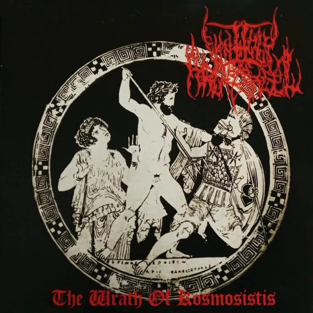 The Wrath of Kosmosistis hits hard from the start. The intro, Zeus Worship, is a ritualistic invocation to the king of Olympus, with lutes underscoring Greek-spoken narration. Then Storming Attack of the Makedonians kicks in with a furious growl and relentless blast beats, guitars tearing through tremolo-picked riffs and lightning-fast solos that show clear influences from Blasphemy and Revenge. The ferocity continues across the EP, with occasional slower, more deliberate moments—but the listener is never allowed a breather, fully immersed in a whirlwind of chaos, aggression, and destruction.