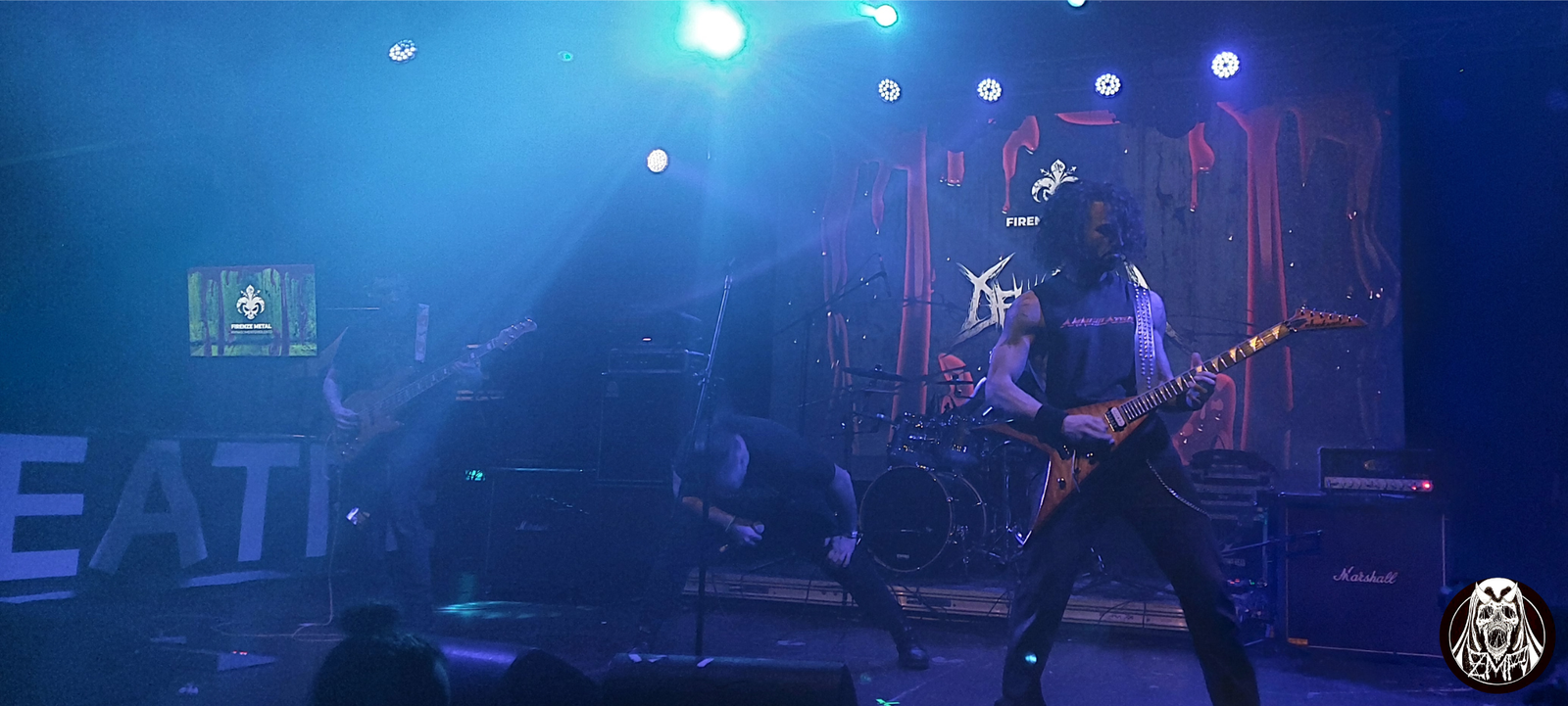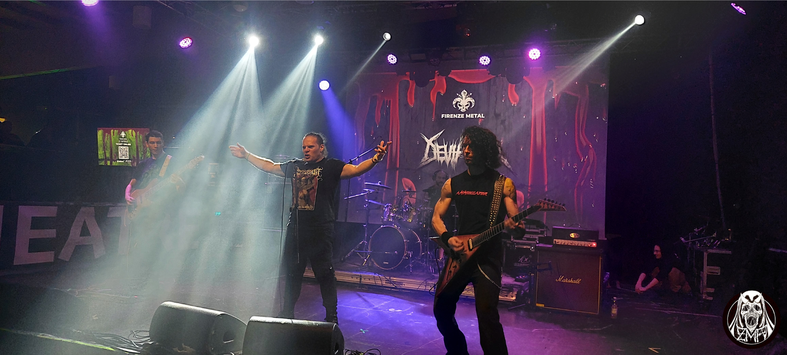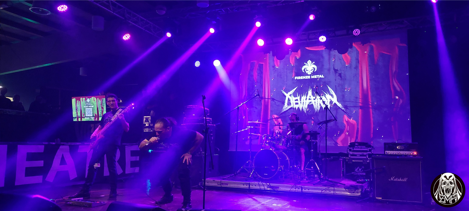 Dopo la consueta pausa, tocca ai Deviation prendersi la scena. Sarà anche una band molto recente, ma i nomi di chi ne fa parte non sono per niente nuovi, specialmente a livello locale. I componenti provengono tutti dai Suicidal Causticity e dai Disboskator, rispettivamente brutal death e thrash, che possono vantare tour e collaborazioni con grandi acts quali Incantation e Subhuman. Ad oggi, i fiorentini hanno prodotto solo un EP omonimo, dal sound esattamente a metà tra le band di provenienza, e non sono più nella pelle per suonarlo davanti ad un pubblico sempre più numeroso. Nikolas “ ”Gorgo“ ” Bruni si dimostra un ottimo performer con il suo potente growl, mentre il bassista Filippo Mannini e il chitarrista Davide Puliti si destreggiano alle grande, sostenuti dalla batteria di Thomas Passanisi. La folla risponde con moshpit, urla e continui incitamenti fino alla fine dello show, orchestrato perfettamente da performer esperti che sanno bene come far scatenare il panico.