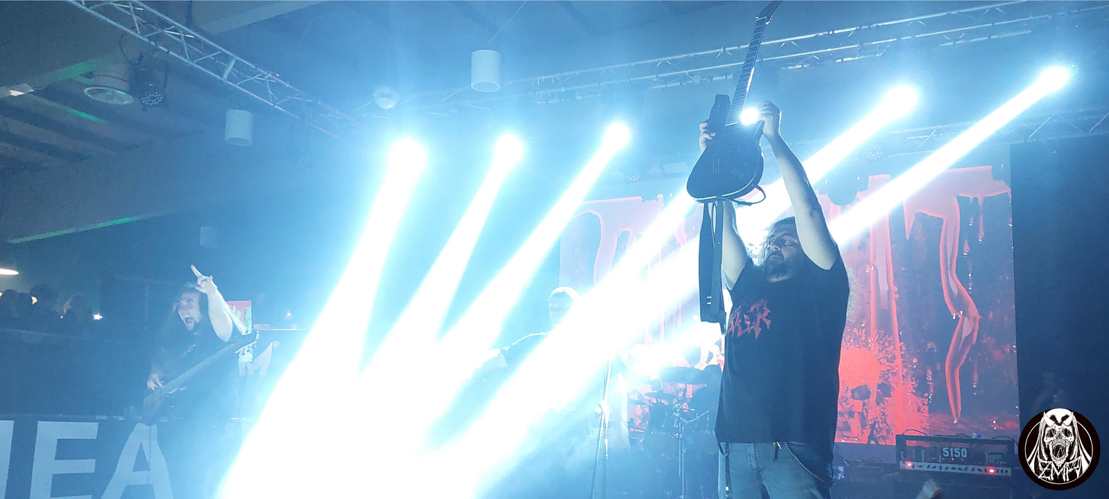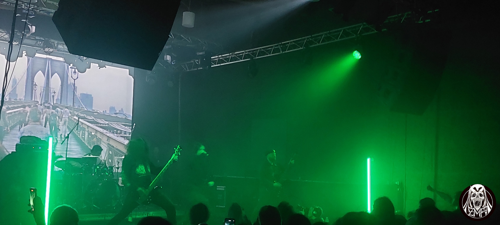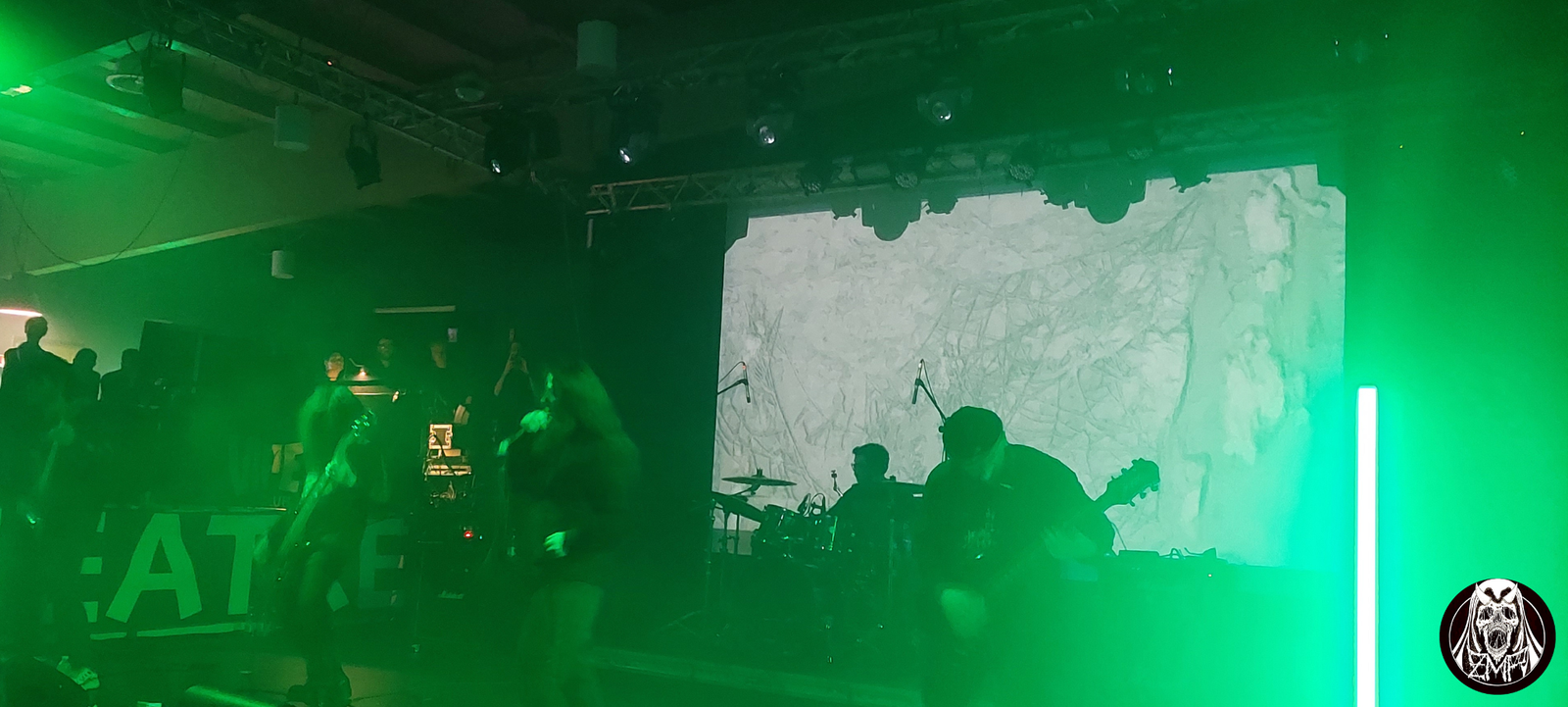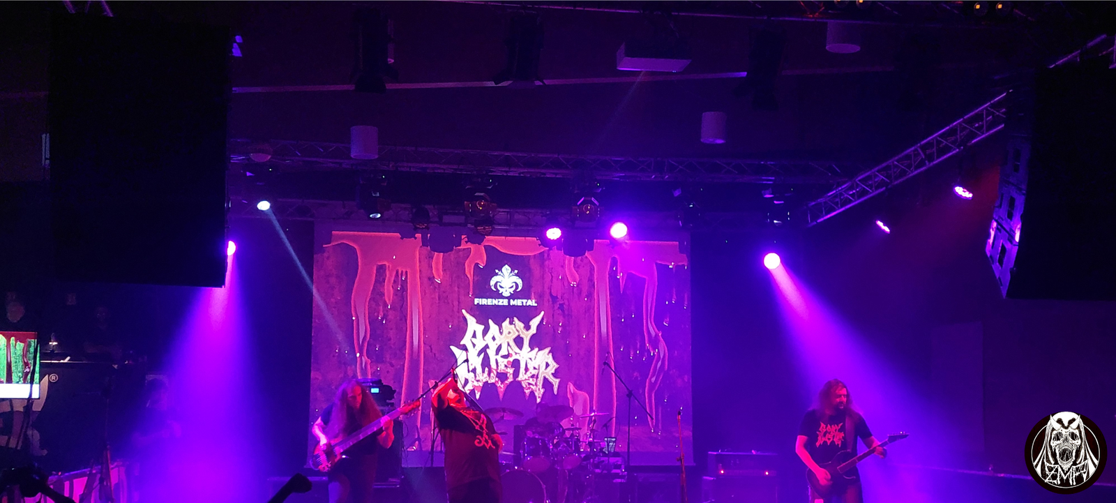 Il divertimento e l’euforia, finora, non sono di certo mancati, ma per rincarare la dose serve un’altra scossa: quella dei Gory Blister. Il gruppo, attivo dal 1991, è ormai tra i veterani del metal nostrano, vantando un palmarès di 7 album in studio, l’ultimo dei quali, Reborn from Hatred, è uscito nel 2023. Con tutta l’esperienza che hanno alle spalle, salgono sul palco fieri, carichi e pronti a far scatenare tutti in un moshpit continuo, riuscendoci alla grande. Paolo Quaglia, il cantante, è in forma smagliante, così come Gianluca D’Andria e Raff Sangiorgio che maneggiano i propri strumenti con maestria. Quello dei Gory Blister è il classico show che ci si aspetterebbe da una band death metal: diretto, senza fronzoli e distruttivo, racchiuso in una esibizione eccellente, tra le migliori della serata. Il pubblico, infatti, li acclama a gran voce, ma il tempo scorre veloce e inesorabile fino alla fine dello show, chiuso con applausi meritatissimi.