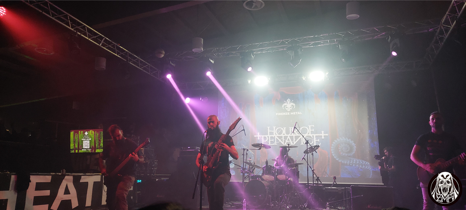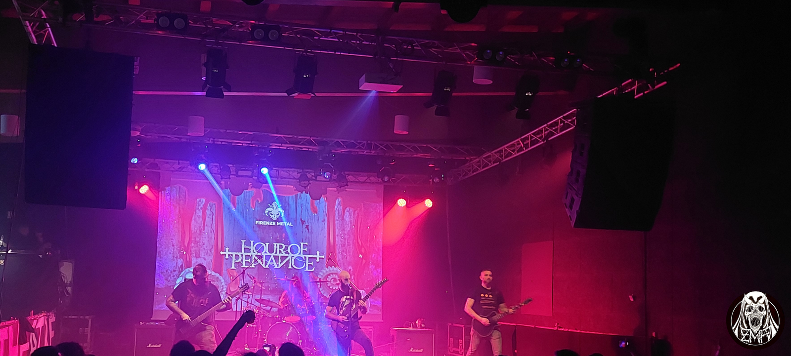 Abbiamo appena superato la metà dell’evento, ma non sono permessi cali di energie e di tensione, perché il trittico finale che ci aspetta è uno di quelli micidiali. E il nome da cui si parte è tutto un programma. Gli Hour of Penance hanno sempre portato in alto il vessillo del death metal made in Italy con un sound tecnico, brutale e demolitore. Tendenza che, a Roma, è condivisa da tanti altri gruppi importanti come Hideous Divinity e Devangelic ma, in questo caso, la differenza la fa il tempo. Gli Hour of Penance sono in giro da un quarto di secolo, e questo li rende autorevoli in tutto ciò che fanno. Poco importa se della formazione originale non sia rimasto più nessuno, perché chi ne fa parte adesso non è da meno. Non a caso, è lo spettacolo a descriverli: Giacomo Torti, già membro dei Bloodtruth, crea alle pelli un muro sonoro impenetrabile che si propaga in tutto il locale, retto dal basso di Marco Mastrobuono e dalle rasoiate di Giulio Moschini e Paolo Pieri, ottimo anche nel growl. Nel mentre, sotto al palco si scatena l’inferno: non c’è un attimo di respiro, il pogo sembra un tornado e, come se non bastasse, qualcuno inizia anche a lanciarsi in temerari crowdsurfing. I brani eseguiti, presi da quasi tutto il repertorio, scorrono come macigni lasciandoci sfiniti, ma soddisfatti. Lo spettacolo non poteva andare meglio.