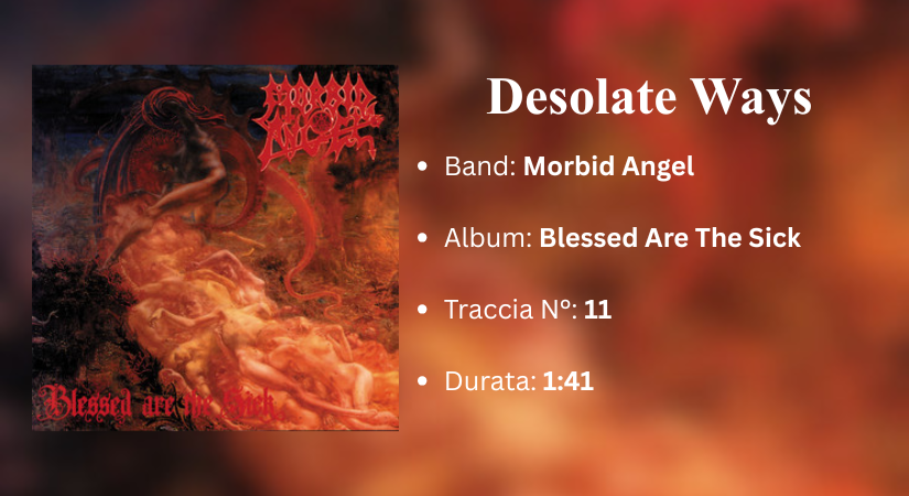 In Blessed Are the Sick ci sono quattro tracce strumentali (tre se si considera l’intro un tutt’uno con Fall from Grace) e Desolate Ways è quella più memorabile. In un disco così furioso, i Morbid Angel decisero di immettere una traccia totalmente anomala per interrompere l’atmosfera maligna con un momento di pura malinconia. Composto dal chitarrista Richard Brunelle, il brano si regge interamente sul suono di una chitarra acustica fingerpicked, che intreccia arpeggi limpidi e accordi sospesi in una progressione meditativa secondo uno schema libero. I temi si ripetono e si trasformano senza mai esplodere, creando una tensione silenziosa ma costante che avanza fino ad un finale contemplativo. Con Desolate Ways, i Morbid Angel iniziarono ad evolversi con i vari interludi proposti negli album successivi, ma nessuno di essi è riuscito a lasciare il segno più di questo.