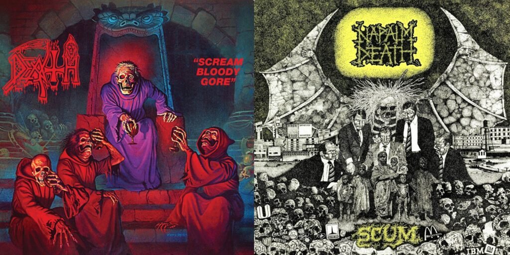 In Inghilterra, i Napalm Death realizzarono Scum (1987) da un sound ancor più veloce, caotico e disturbante, mai visto prima di allora, coinvolgendo anche i Carcass con Reek of Putrefaction e gli Extreme Noise Terror con A Holocaust in Your Head, usciti nel 1988, creando ufficialmente il grindcore.
